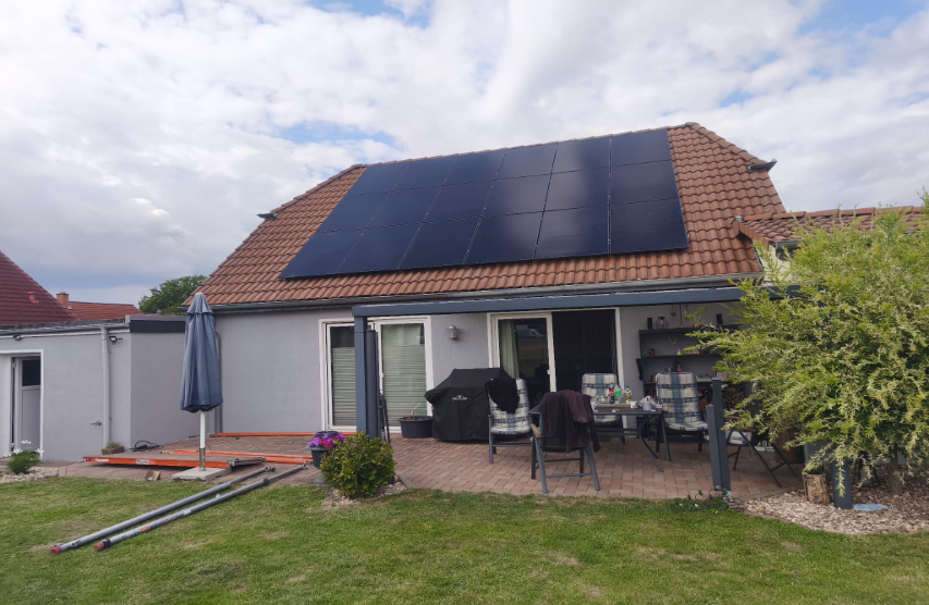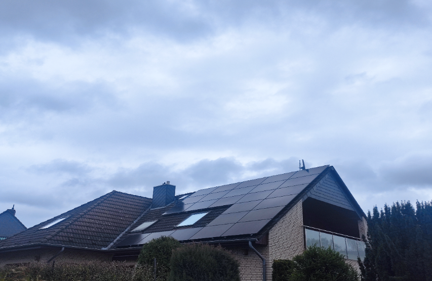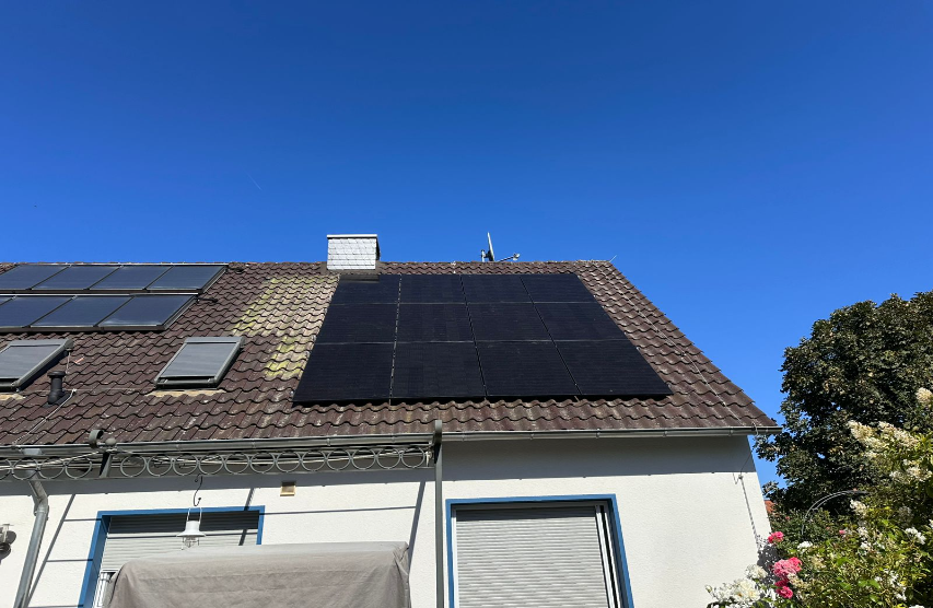 Dieses Einfamilienhaus wurde mit einer Photovoltaikanlage von 7,56 kWp ausgestattet. Auch auf kleineren Dachflächen lässt sich so effizient Strom erzeugen und direkt im Haushalt nutzen.