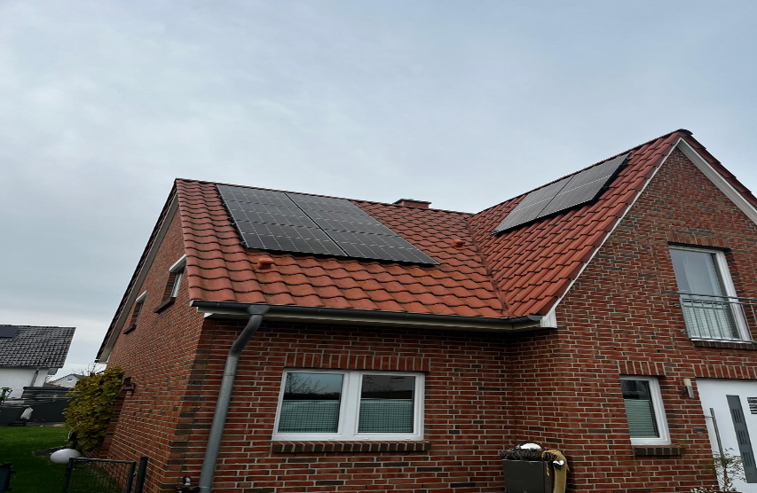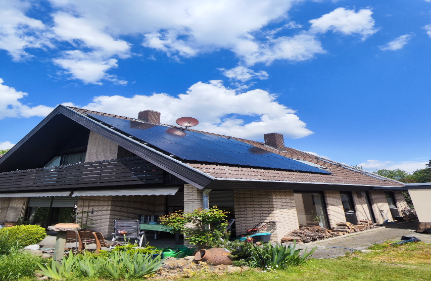Auf diesem Einfamilienhaus haben wir eine Photovoltaikanlage mit 7,74 kWp realisiert. Die Anlage nutzt die Dachfläche optimal und liefert zuverlässig grünen Strom für den Eigenverbrauch.