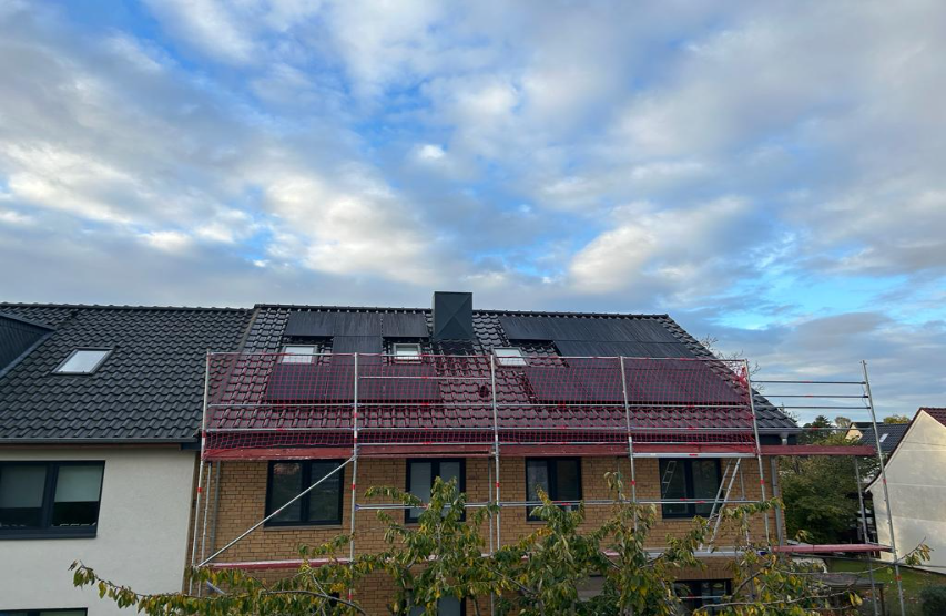 Auf diesem Mehrfamilienhaus haben wir eine Photovoltaikanlage mit 25,80 kWp Leistung installiert. Die Anlage fügt sich harmonisch in das Dachbild ein und versorgt die Bewohner zuverlässig mit erneuerbarer Energie.
